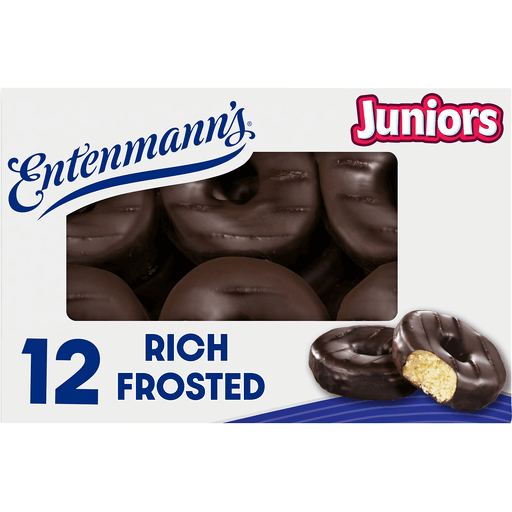 Indulge in the delectable taste and delightful tradition of Entenmann’s Rich Frosted Donut Juniors. Entenmann's most popular donut in a moist, golden cake donut enrobed in rich frosting for mouthwatering deliciousness and a mid-size that is perfect for on-the-go snacking. These chocolatey-covered donuts never fail to make your morning coffee or afternoon tea better. Entenmann’s baked goods are always made with care and quality ingredients for a delicious taste you can count on. Whether you enjoy them as a breakfast food, part of brunch, as a midday snack or dessert, Entenmann’s donuts are kosher, allowing everyone to enjoy a spontaneous sprinkle of delight whenever they need one. Entenmann’s cakes, coffee cakes, donuts and pastries help families celebrate special occasions and the everyday with heritage baked goods. Celebrate the moment with Entenmann’s Rich Frosted Donuts. Everyone’s got a favorite. What’s yours?