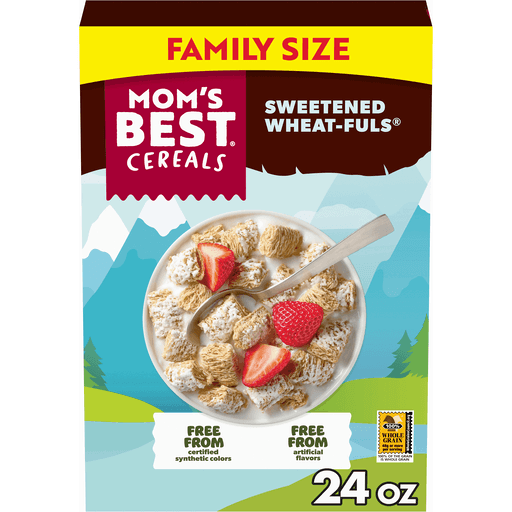 Start your day right with Mom’s Best Sweetened Wheatfuls®, a hearty, satisfying breakfast cereal the whole family will love. This crunchy shredded wheat cereal delivers 48g of whole grains per serving. It’s an excellent fiber cereal and a smart choice for those looking for a cereal for adults or kids. This low-fat cereal is also a cholesterol free cereal, saturated fat free cereal, low sodium, and a non-GMO cereal you can feel good about. Whether you enjoy it at breakfast or as a crunchy snack, this delicious cold cereal is a nourishing way to start your day.
