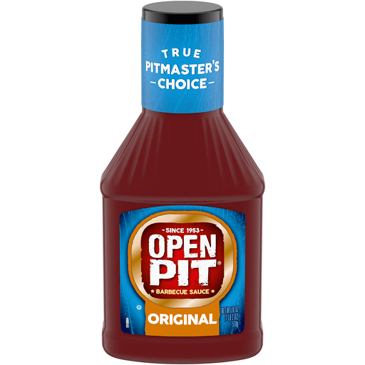 For true pit masters' choice flavor, try Open Pit Blue Label Original Barbecue Sauce. This special blend of spices and tanginess combines for a smoky BBQ sauce that is great for ribs, burgers, chicken, pork and all your favorite grilling recipes. Enjoy it straight out of the bottle or add your own special spices and enhancements. Open Pit: The Secret Sauce of BBQ Pit Masters for Over 50 Years.