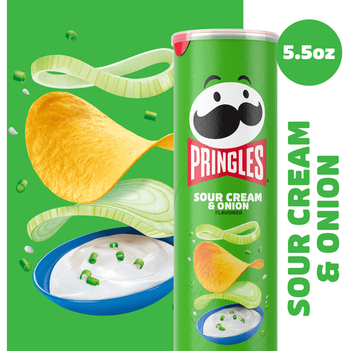 What comes next after the “pop” of a Pringles Sour Cream and Onion can? The crisp, crunchy, hit-the-spot taste of potato seasoned with zesty sour cream and onion. Ingeniously shaped Pringles Sour Cream and Onion potato crisps are insanely light, crispy, and never greasy. Perfect for sharing, these crisps are perfectly salty and bursting with savory flavor. With this convenient, portable can, it’s easy to create your own snacking moments wherever and whenever; Grab a can as a pick-me-up for after school or pack as the ultimate car snack for road trips. Bring these snacks to game time and pack a few for other Pringles fans. Stash this anytime snack in your work desk or pantry to enjoy anytime. Share Pringles at your next cookout or BBQ to turn up the flavor and fun among family and friends. Get your hands on Pringles Sour Cream and Onion potato crisps for an irresistible taste experience that keeps you coming back, stack after stack.
