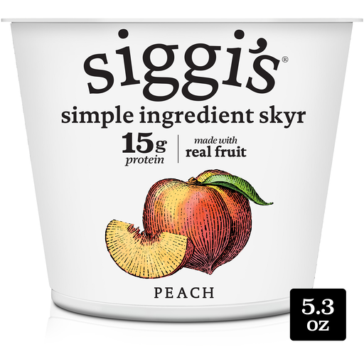 siggi's Peach Icelandic-Style Nonfat Strained Yogurt is an ode to a deeply rooted Scandinavian dairy tradition that has been a part of Icelandic culture for centuries. siggi's founder wasn't thrilled with the overly sweet and artificial taste of other US yogurt brands, inspiring him to create yogurt crafted with less. Each cup of siggi's peach skyr uses 4x the amount of milk than a regular cup of yogurt — making it rich in protein. siggi's skyr is thick and creamy — ideal as a nonfat addition to breakfast, a nutritious snack, or a quick and easy afternoon pick-me-up. Pair with your favorite toppings, like fresh berries and granola, or enjoy as is. Our nonfat peach yogurt contains 5 simple ingredients and no artificial anything. Made with real peaches, our gluten-free and kosher strained yogurt is a simple and delicious addition to any day. Try our full line of products, including skyr, drinkable yogurt, plant-based blends, and yogurt pouches.