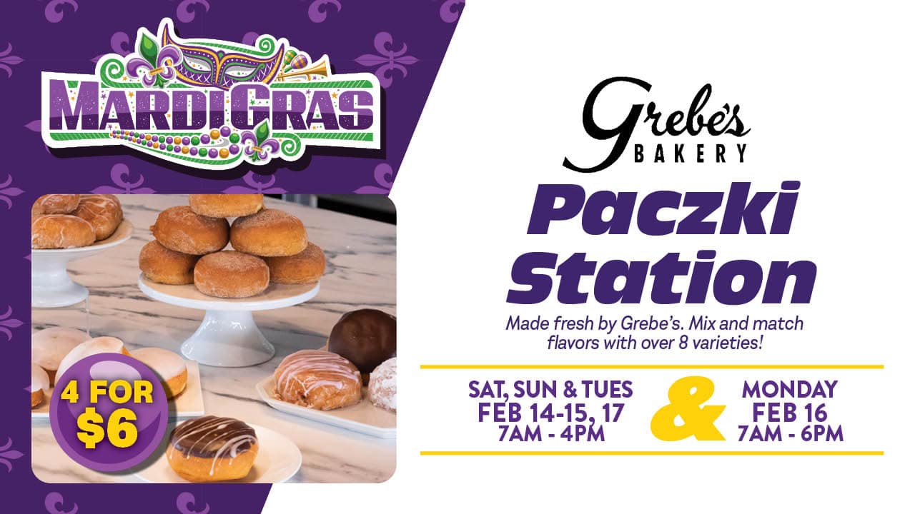 Catch the Paczki Stations on February 14 – 15, & 17 from 7am – 4pm