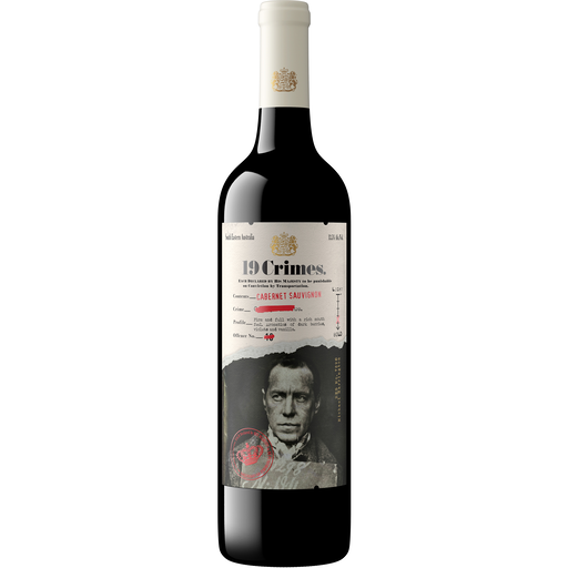 Bright red to crimson in hue, 19 Crimes South Australia Cabernet Sauvignon red wine isn’t shy about its intense aromas of vanilla, violet, and mulberry, and bold flavors of red currant, dark cherry, and chocolate. Firm on the palate and subtly sweet, 19 Crimes celebrates the rule-breaking British rogues who forged new lives in Australia after banishment from their homeland. A smooth Cabernet Sauvignon with bursts of red and black fruit, pair this red wine with hearty beef or pasta dishes. Like all our 19 Crimes vino, this wine is best enjoyed with friends.