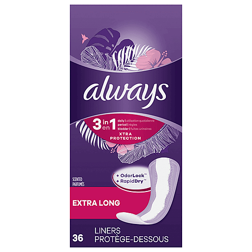 Always 3 in 1 Scented Extra Long Liners 36 Ea