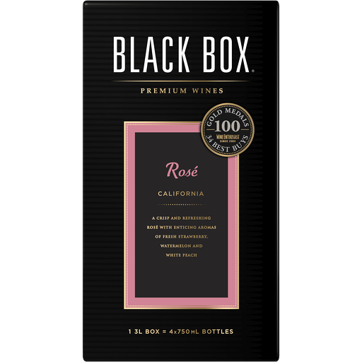 Black Box Rose is a refreshing blush wine that comes in a sleek, portable box. This box wine is light, refreshing and fruit-forward with enticing notes of strawberry, red berry and white peach leading to a bright, dry finish. It makes the perfect pairing with foods like baked ham, turkey and grilled salmon. Black Box Rose is great for a variety of occasions, whether you're entertaining friends and family at an outdoor barbecue or when you are unwinding after a long day of work. Each 3 L box contains about 4 bottles of wine with 12.5% alcohol by volume. The convenient box is shatterproof and resealable, making any outing easy. Plus, the wine stays fresh for up to 6 weeks after opening, giving you plenty of time to enjoy it. Black Box is the most awarded boxed wine. In addition to Rose, Black Box also offers Pinot Grigio, Chardonnay, Sauvignon Blanc, and other varieties​.