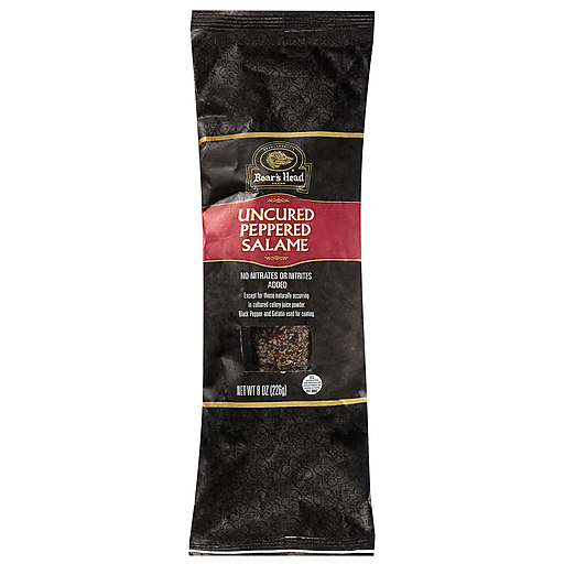 An American West Coast inspired salame. Boar's Head Uncured Peppered Salame is hand-trimmed pork blended with wine and Italian style seasonings, naturally aged and hand-rolled in coarse black pepper for a deep, rich flavor.