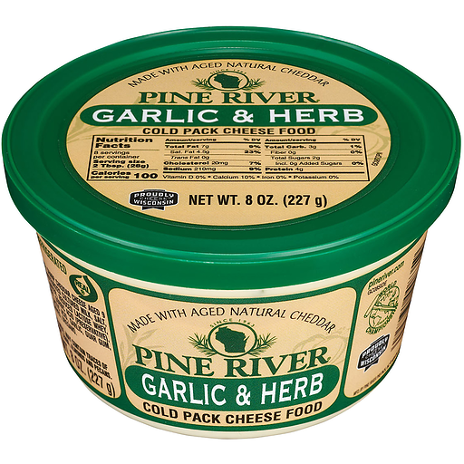 Pine River Garlic Herb SpreadCreamy white Wisconsin Cheddar accented with garlic, parsley, oregano, and chives for a fresh-tasting zing.
