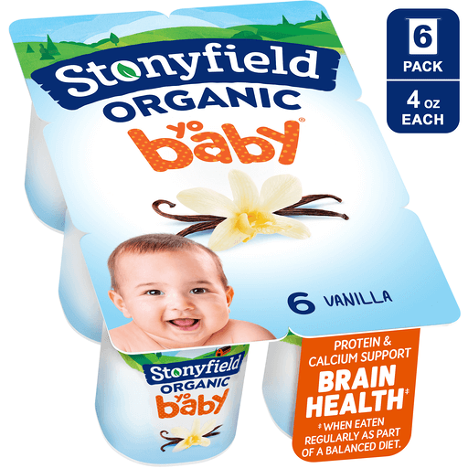 Stonyfield Organic Yogurt, Whole Milk, Vanilla, 6+ Months 6 Ea