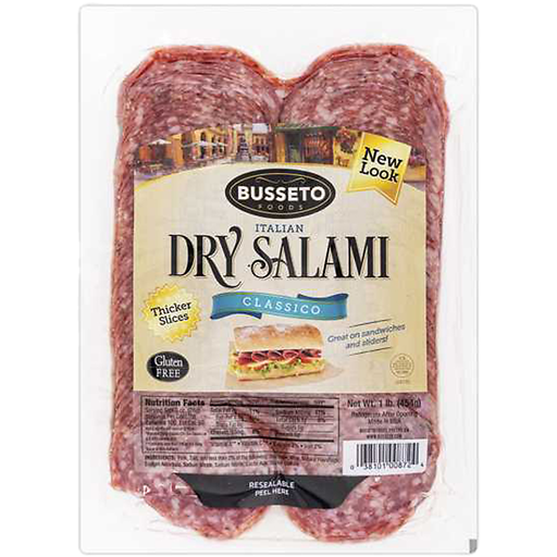 Busseto Salami, Dry, Italian 16 OzSliced stack pack. US inspected and passed by Department of Agriculture.
