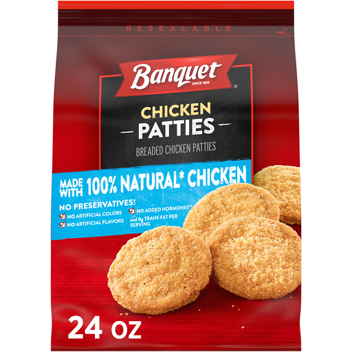 Since 1953. No preservatives! No artificial colors. No added hormones (Federal regulations prohibit the use of added hormones in chicken). Fully cooked. For over 60 years, Banquet has been making delicious food the whole family loves. So, it's no surprise that these Chicken Breast Patties are perfect for anyone to enjoy any time. Made with 100% natural (Minimally processed, no artificial ingredients) chicken.