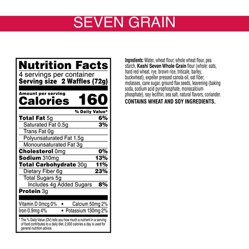 Make any morning, afternoon, or evening more delicious with Kashi Seven Grain frozen waffles, made with a tastebud-tempting blend of seven grains. Includes 1, 10.1-ounce box containing 8 waffles. Simply heat them in the toaster or oven for a warm and tasty treat at any time of the day. Vegan and Non-GMO Project Verified, each serving of crisp and fluffy waffles has 13g of whole grain and provides an excellent source of fiber (5g total fat); Delectable on their own, Kashi Seven Grain frozen waffles also pair perfectly with maple syrup, fresh fruits, ice creams, and whipped toppings to satisfy your sweet tooth. Anytime is the right time for Kashi GO Peanut Butter Crunch cereal. Kashi is making planet-positive choices to lower our company’s impact on climate change. We measure the amount of emissions from the manufacturing plants that create our foods and invest in renewable energy projects and programs in the US that remove the same amount of emissions from the air.