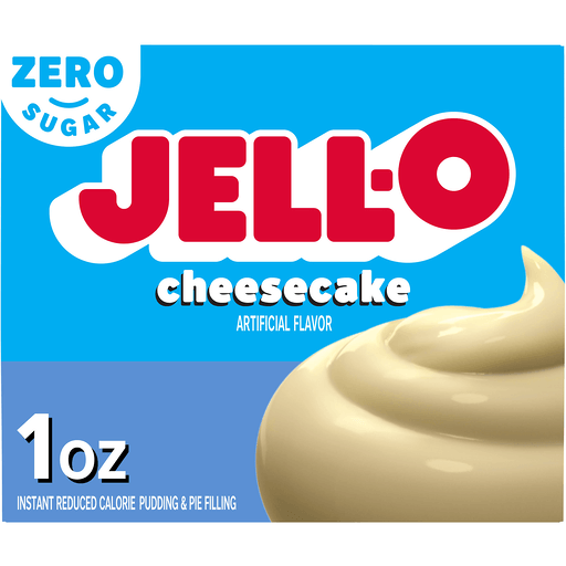 Snack happy. Jell-O Zero Sugar Cheesecake Artificially Flavored Instant Reduced Calorie Pudding Mix & Pie Filling tastes delicious whether you enjoy it as a treat or use it as an ingredient in your favorite dessert recipes. Add some wonder to your day with a delicious snack. Fun to make with your kids, our zero sugar artificially flavored cheesecake pudding mix can also be used to create a poke cake, tasty crepes or cheesecake pudding pie. You'll feel good about serving our zero sugar pudding mix that is 2/3 fewer calories than regular Jell-O Instant Chocolate Pudding; as packaged, this product has 25 calories, regular product has 100 calories. Our zero sugar artificially flavored cheesecake pudding mix is ready in as little as five minutes. Simply stir milk into the pudding mix and allow to set. Every zero sugar Jell-O pudding mix comes packaged in a 1-ounce sealed pouch. Pudding fun in every bite.