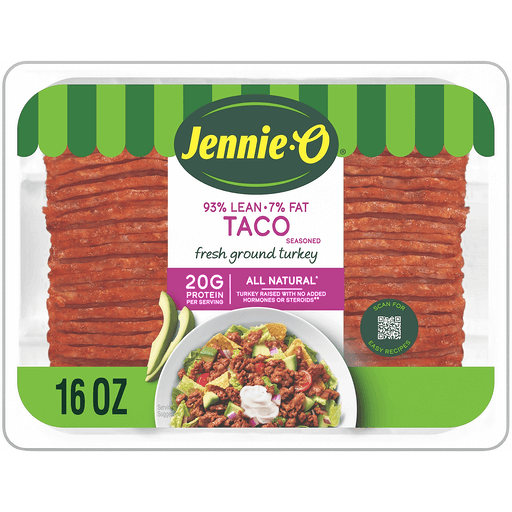 Jennie O Turkey, Ground, Fresh, 93%/7%, Taco Seasoned 16 OzJENNIE-O Taco Seasoned Ground Turkey - 1 lb. tray