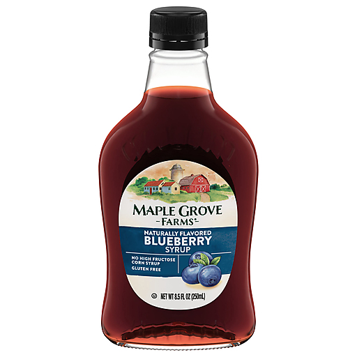 MAPLE GROVE FARMS DESSERTS & TOPPINGS BLUEBERRY SYRUP IS A DELICIOUS ADDITION TO A VARIETY OF DESSERTS AND OTHER FOODS. MADE FROM NATURAL INGREDIENTS. MAPLE GROVE FARMS DESSERTS & TOPPINGS BLUEBERRY SYRUP IS PURE AND FREE FROM HIGH FRUCTOSE CORN SYRUP AND OTHER UNNECESSARY ADDITIVES. THIS PRODUCT IS KOSHER AND GLUTEN FREE. EACH BOTTLE OF MAPLE GROVE FARMS DESSERTS & TOPPINGS BLUEBERRY SYRUP CONTAINS 8.5 FL. OZ. WITH 4 SERVINGS PER BOTTLE AND 210 CALORIES PER SERVING. SHAKE WELL BEFORE SERVING AND REFRIGERATE AFTER OPENING. SEE NUTRITION FACTS PANEL FOR ALLERGENS.