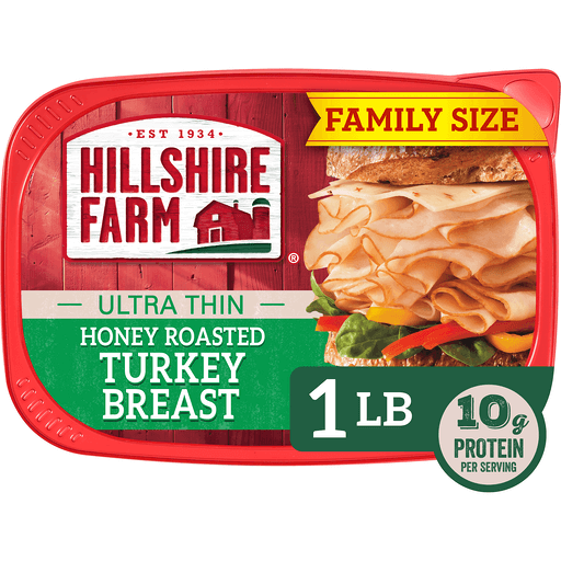 Bring the goodness of the farm to your table and experience the taste of a homestyle meal on a sandwich with Hillshire Farm Ultra Thin Sliced Honey Roasted Turkey Breast Sandwich Meat. Our golden and honey roasted, thin sliced turkey lunch meat is carefully crafted with the highest quality ingredients. Our farmhouse quality turkey breast is made with no artificial preservatives or flavors, and no nitrates or nitrites added (except for those naturally occurring in the celery juice powder and sea salt). Try our gluten-free sliced turkey in a sandwich or wrap, on a salad or as part of a charcuterie board. Each 16-ounce package of Hillshire Farm Honey Roasted Turkey Breast is double sealed for freshness and flavor.