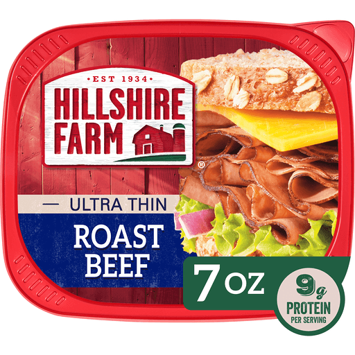 Can a sandwich crafted with delectably roasted cuts make your tastebuds quake with yearning? For Sure, It's Hillshire! Bring the goodness of the farm to your table and experience the taste of a homestyle sandwich made with Hillshire Farm Ultra Thin Sliced Roast Beef Sandwich Meat. Made with slow-cooked, oven-roasted beef, our roast beef is juicy, flavorful and 95% fat-free. Our farmhouse quality roast beef is made with no artificial preservatives or flavors, and no nitrates or nitrites added. Try our sliced roast beef in a sandwich or wrap, on a salad or as part of a charcuterie board. Each 7-ounce package of Hillshire Farm Roast Beef is double sealed for freshness and flavor. At Hillshire Farm brand, we are committed to the values of the farm, and we know that quality is always the most important ingredient. You can taste the generations of care and craftsmanship in every recipe because farmhouse values never go out of season.