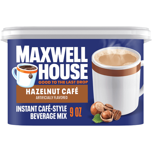 Take a moment. Prepare for what is next with Maxwell House Instant Beverage Mix. Indulge in a cafe-style Hazelnut Cafe artificially flavored coffee drink that is easy to prepare. Savor a sweet aroma with a rich, smooth creamy taste that is good to the last drop. Enjoy whenever and wherever you want. Each cup has our consistent signature taste that is good to the last drop. Craving coffee shop-style drinks you can make and enjoy from the comfort of your home? Our convenient and indulgent cafe-style coffee drink is easy to make and perfect for the morning or as an afternoon pick-me-up. Simply spoon, stir and enjoy! First, measure 2 rounded tablespoons into a mug. Next, slowly stir in 12 oz of boiling water. Adjust the amount of beverage mix to fit your personal taste. You can also prepare with hot (not boiling) milk or milk alternatives. Add ice to make a refreshing iced coffee drink. Maxwell House Hazelnut Cafe Instant Cafe-Style Beverage Mix comes in a 9-ounce resealable canister to lock in flavor between uses. Each canister makes about nine servings. From lively light roasts to full-bodied dark blends, Maxwell House’s signature taste is created through a process that isn’t done the easy way, but the right way, for over 130 years.