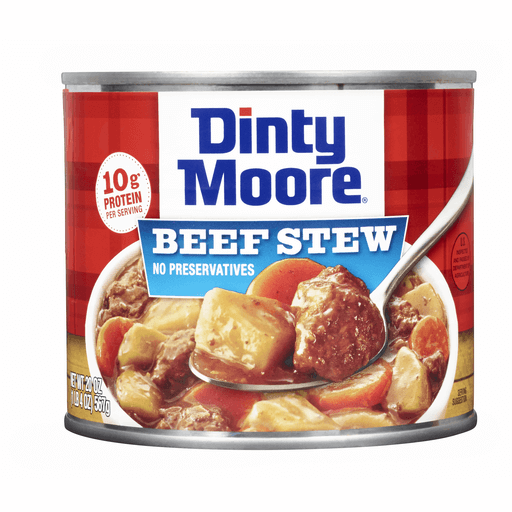 Dinty Moore Beef Stew 20 Oz10 g protein per serving. No preservatives. US inspected and passed by Department of Agriculture. Gluten free. Visit www.hormelfoods.com. Steel: Please recycle.