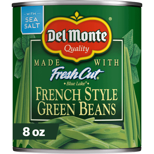 Add Del Monte Fresh Cut Blue Lake French Style Green Beans, picked and packed at the peak of freshness, to bring a delicious and economical touch to your meals. The 8 oz can is the perfect size for smaller meals and recipes. Featuring three simple ingredients: green beans, water, and sea salt. Made without preservatives, these non-GMO* canned green beans are perfect as a standalone vegetable side to complete quick busy weeknight meal or as an ingredient to a recipe. Looking for some inspiration? These finely sliced Del Monte green beans pair perfectly with pasta and other nutritious vegetables, like butternut squash and diced tomatoes, for a colorful and tasty meal. Picked at the peak of freshness and packed within hours of harvest in our non-BPA** cans, you can feel confident stocking your pantry with this USA grown vegetable. Bring the goodness of Del Monte Fresh Cut canned vegetables to your dinner table today. *No genetically engineered ingredients. **Can lining produced without the intentional addition of BPA.