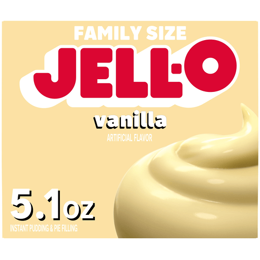 Snack happy. Jell-O Vanilla Artificially Flavored Instant Pudding Mix & Pie Filling tastes delicious whether you enjoy it as a treat or use it as an ingredient in your favorite dessert recipes. Add some wonder to your day with a delicious vanilla dessert. Fun to make with your kids, our artificially flavored vanilla pudding mix can also be used to create a poke cake, tasty crepes or vanilla pie filling. Our artificially flavored vanilla pudding is ready in as little as five minutes. Simply stir milk into the pudding mix and allow to set. Every Jell-O pudding mix comes packaged in a 5.1-ounce sealed pouch. Stock up with our convenient family-size box. Pudding fun in every bite.