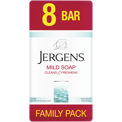 Jergens Personal Size Mild Soap 8 Ct BarsCleans & freshens. www.jergens.com. Questions or comments? www.jergens.com or 1-800-742-8798. Made in USA.