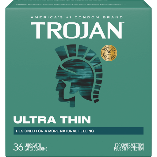 Experience ultra sensitivity with Trojan Ultra Thin Condoms. Thinner than standard Trojan Lubricated Condoms, Trojan Ultra Thin condoms are designed for a more natural feeling to bring you increased enjoyment and sensation. With silky-smooth lubricant for comfort and sensitivity, each of these thin condoms for men is made from premium-quality latex and is electronically tested to help ensure reliability. These condoms also feature a special reservoir tip for extra safety, so you can enjoy the moment without worry. Trojan Brand Condoms reduce the risk of unintended pregnancy and sexually transmitted infections (STIs) while you play. Each value box of condoms includes 36 Trojan Ultra Thin Condoms. Trojan Brand Condoms are America's #1 Condom, trusted for over 100 years. Trojan promotes a safe, healthy, and fun sex life. From condoms to vibrators to lubricants, Trojan is dedicated to delivering innovative, high-quality products that offer pleasure and protection. Product is HSA/FSA eligible. When used correctly, condoms are unlikely to break. To prevent breakage, do not use condoms after the expiration date, keep in a cool, dry place, and use water or silicone-based lubricants for latex condoms.