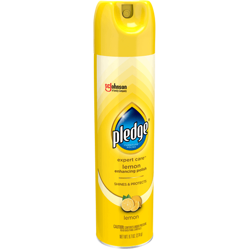 Pledge Enhancing Polish improves the appearance of most hard surfaces by removing dust and fingerprints and providing a protective, glossy coating without waxy buildup. The pleasant lemon scent of our wood polish spray keeps your home smelling clean.