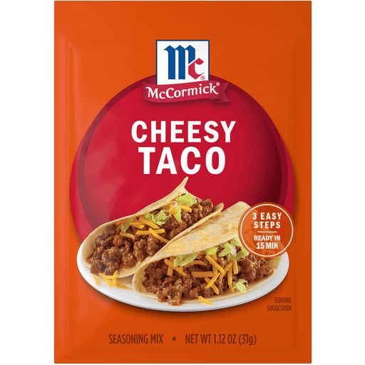 Turn any night into taco night with McCormick® Cheesy Taco Seasoning Mix. Made with real cheddar cheese and a Southwest-inspired blend of chili pepper, paprika, and McCormick spices, it’s a cheesy twist your whole family will love. When added to anything, this cheese-forward seasoning mix creates a creamy, craveable flavor. This easy-to-use seasoning adds a kick to ground beef or turkey tacos and transforms everyday dinners with just one packet. Crafted by McCormick, America’s #1 herb and spice brand, this mix brings big flavor with simple prep.