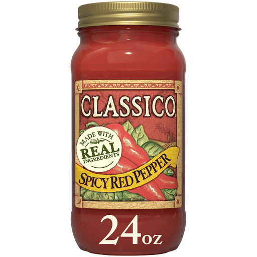 Classico Spicy Red Pepper Pasta Sauce is a spirited sauce with red pepper that adds spice to any meal. Create your next homemade meal with this bold, spicy sauce. Our sauce is easy to prepare and offers a rich, flavorful taste. Made with real ingredients and no sugar added, our sauce has a hearty flavor. Simply simmer and serve our sauce with your favorite meal. Use our red sauce for spaghetti, chicken Parmesan, lasagna or grilled chicken pasta. You can even try our sauce as a pizza sauce for homemade pizza or a dipping sauce for garlic bread. Be sure to refrigerate our 24-ounce jar of sauce after opening. Classico pasta sauce has a flavor for everyone in your family, from Spicy Red Pepper Pasta Sauce to Caramelized Onion & Roasted Garlic Pasta Sauce. Make it yours, for your homemade dish.