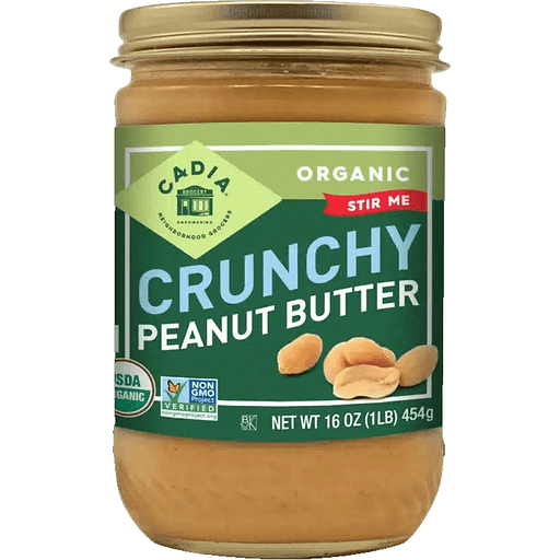 Cadia Organic Crunchy Peanut ButterCrafted the old-fashioned way, our organic crunchy peanut butter is packed with pieces of dry-roasted peanuts and a touch of salt for a distinctively delicious flavor.