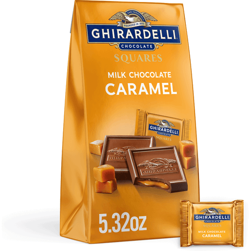 Unwrap Ghirardelli Milk Chocolate Squares with Caramel Filling for moments of luxurious indulgence. Ghirardelli Squares add a sweet touch to your day on their own and offer a delicious twist to s'mores and other desserts for something special. Luscious caramel fills the slow-melting, creamy milk chocolate. Individually wrapped chocolate squares are easy to share or enjoy one at a time. Premium ingredients, including high quality cocoa beans, are part of the Ghirardelli difference: a commitment to ultimate quality from Bean to Bar. Ghirardelli Makes Life a Bite Better.