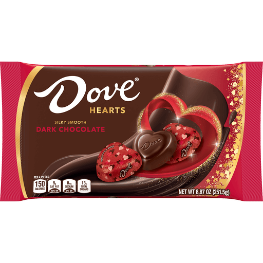 Dove Dark Chocolate, Hearts 8.87 OzMars real chocolate. Dove Brand Promises Dark Chocolate Hearts are made with only the finest cocoa beans to create a luxuriously smooth, rich chocolate taste. Delight in the decadence of Dove Chocolate.