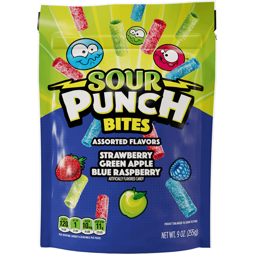 Sour Punch Bites are the snack that's about to level up your taste game. If you're all about that sour life, then these bites are your new BFFs. With a lineup of bold flavors, like strawberry, blue raspberry, and green apple, you'll never get bored. And the best part? These babies are bite-sized, so you can snack on the go and always keep that sour vibe going. So, if you're ready to bring the pucker power, grab a bag of Sour Punch Bites and get ready to turn up the tang.