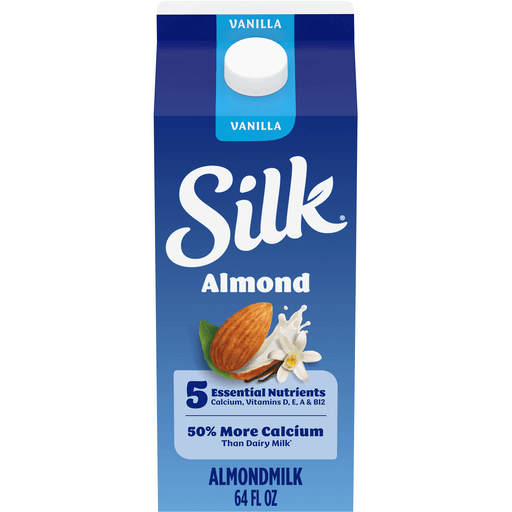 Treat yourself to this smooth and seriously creamy Silk Vanilla Almondmilk. Made with three kinds of almonds grown by Mother Nature and picked at the peak of ripeness, this lactose free milk has a perfect mix of quality and flavor. Plus, its smooth vanilla flavor makes it an extraordinary tasting plant based milk that you can use throughout your day. It tastes great in a bowl of cereal or in your favorite smoothies. Every serving of this non dairy milk has Vitamin D to help support strong bones and 50% more calcium than dairy milk**. Silk Almondmilk is totally free of dairy, soy, lactose, gluten, casein, egg, and MSG. Looking for lactose free and gluten free cooking or baking supplies? Silk Almondmilk makes an excellent addition to sauces and baked goods. Whether you’re making a bowl of cereal, drinking straight out of a glass or enjoying a frothy coffee, trust Silk — the Original Plant Pioneer. Today Silk supports regenerative agriculture because we believe in the power of plants for people and the planet. It’s not just almondmilk, it’s Milk of the Land***. Read more about our story on our packaging. Enjoy all of the Silk products, including vegan milk, non dairy creamers and dairy free yogurt varieties. *See Nutrition Facts for sugar and calorie content. **Silk Vanilla Almondmilk: 470mg of calcium per cup; reduced fat dairy milk: 309mg of calcium per cup. USDA FoodData central, 2022. ***From plants, not cows. Not nutritionally equivalent to dairy milk.