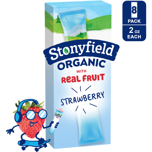 Hungry kids are no picnic. Fix it quick with portable Stonyfield Organic Reduced Fat Yogurt Tubes! Make morning yummy with a delicious treat that's sure to help get kids out of bed and into the kitchen for breakfast or an afternoon snack. Or pack a handheld yogurt tube for lunch, sports, camping, or on the go. We use 100% organic milk from pasture-raised cows, live and active cultures, and a variety of flavors to create a tantalizing snack for kids on the go. Our yogurt is made without the use of toxic persistent pesticides, antibiotics, artificial growth hormones, or genetically modified organisms (GMOs), protecting growing kids and contributing to a sustainable world. Try our full line of products for babies, kids and adults, including yogurt cups, yogurt pouches, multi-serving yogurt containers, dairy free smoothie pouches, drinkable yogurt, yogurt tubes and more. With fresh taste, high quality ingredients, and no added nonsense, Stonyfield Organic Yogurt for kids is #goodonpurpose!