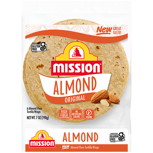 New great taste! New almond flour tortilla wraps. No artificial colors. Full of the goodness of almonds and free from gluten, our almond flour tortillas are sure to satisfy with the added nutritious benefit of high fiber. Looking for the perfect almond flour tortilla? Try our soft, gluten-free almond flour tortillas for a tasty and nutritious alternative to traditional flour tortillas. They deliver the great authentic Mission flavor you know and love. So get wrapping and enjoy with all your favorite fillings!