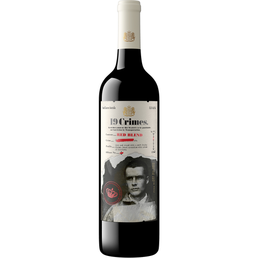 Proclamation: 19 Crimes. Each declared by his Majesty to be punishable on conviction by transportation. Nineteen Crimes turned criminals into colonists. Upon conviction, British rogues, guilty of at least one of the 19 crimes, were sentenced to live in Australia, rather than death. This punishment by transportation began in 1788, and many of the lawless died at sea. For the rough-hewn prisoners who made it to shore, a new world awaited. As pioneers in a frontier penal colony, they forged a new country and new lives, brick by brick. This wine celebrates the rules they broke and the culture they built. 13.0% alc./vol. Produced and bottled by 19 Crimes, Australia. Imported by TWE Imports, Napa, CA. Wine of Australia.