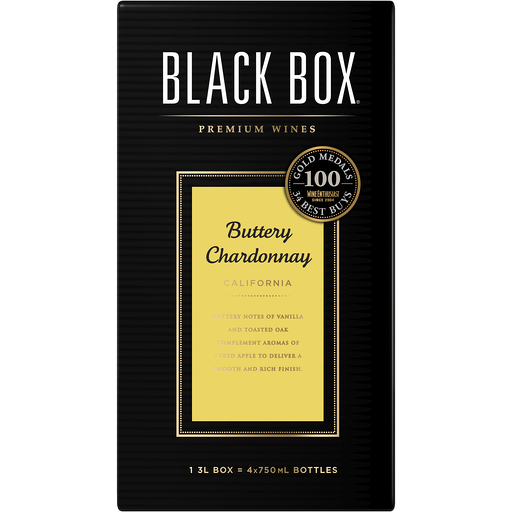 Black Box Buttery Chardonnay is a smooth, rich white wine that comes in a sleek, portable box. This wine features buttery notes of vanilla and toasted oak, and complementary aromas of baked apple lead to a smooth and rich finish. It makes the perfect pairing with foods like grilled chicken, white fish, and mild, soft cheeses. Black Box Buttery Chardonnay is great for a variety of occasions, whether you're hosting a dinner party with family or friends or enjoying a glass after a long day of work. This wine stays fresh for up to 6 weeks after opening, giving you plenty of time to enjoy it. Produced from some of the world's most prestigious wine-growing regions, Black Box is the most awarded boxed wine. In addition to Buttery Chardonnay, Black Box offers Pinot Grigio, Sauvignon Blanc, and other varieties.