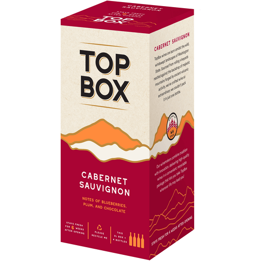 Discover the essence of Washington's wine elegance with TopBox Cabernet Sauvignon Red Wine. At TopBox, we champion a gentle touch, allowing the wine to echo the rich character of Washington - a luscious fruit-forward profile, gracefully structured and complemented by a subtle embrace of oak. Our secret? A meticulous fermentation and aging process, predominantly in stainless steel, complete with bi-daily pump overs for a week. The result? A cabernet wine that's vividly alive, preserving the fruit's authentic essence. Every pour of this boxed red wine unravels a tapestry of dark fruits, plum, decadent chocolate, and a hint of vanilla, culminating in a lush, velvety mouthfeel. This Cabernet is your perfect companion whether you're savoring charcuterie, indulging in antipasto, relishing grilled sirloin, or a succulent duck dish. And with no wine opener required, your Washington wine journey is just a pour away.