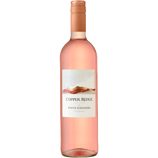 Copper Ridge White ZinfandelLight rose colored featuring pleasant floral aromas, fresh strawberry and juicy peach flavors, and a delicate, clean finish. Light-bodied, the perfect balance of sweetness and acidity.