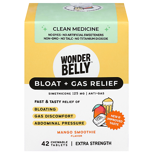Wonderbelly Extra Strength Chewable Tablets Mango Smoothie Flavor Bloat + Gas Relief 42 Ea
